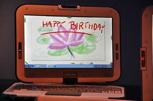 英特尔公司在本届CeBIT2010上展示了可折叠式学生电脑(Classmate PC),图如下: